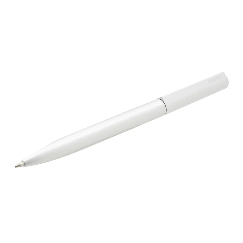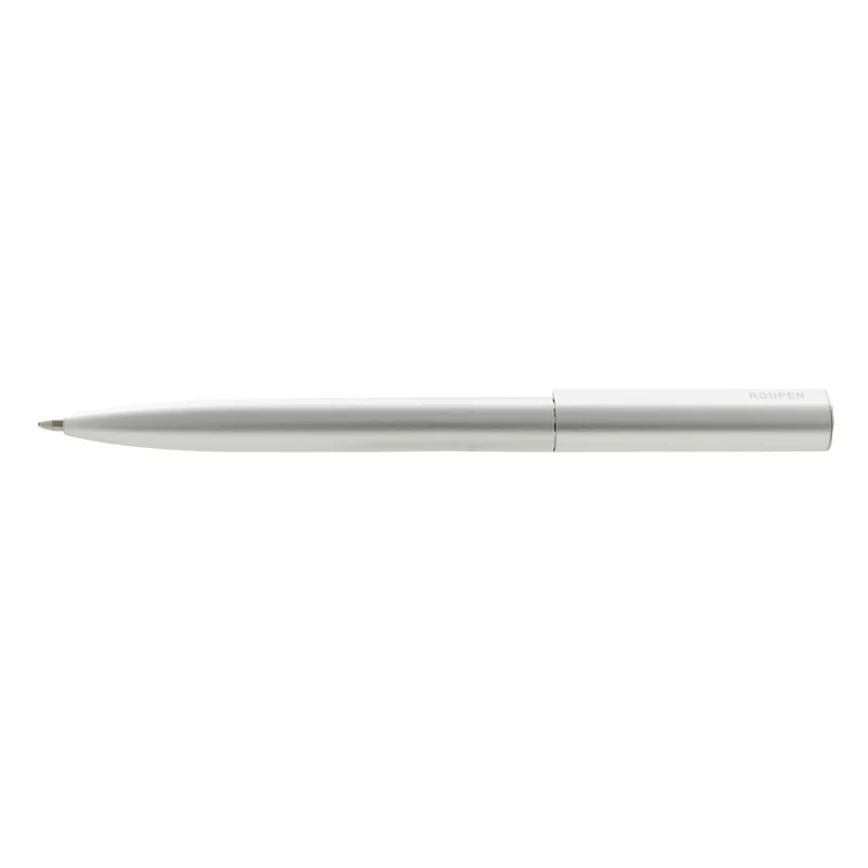 Bolígrafo de cuerpo metálico en aluminio con detalles en negro y plata. Cuenta con tinta azul y apertura con medio giro. Tinta Azul