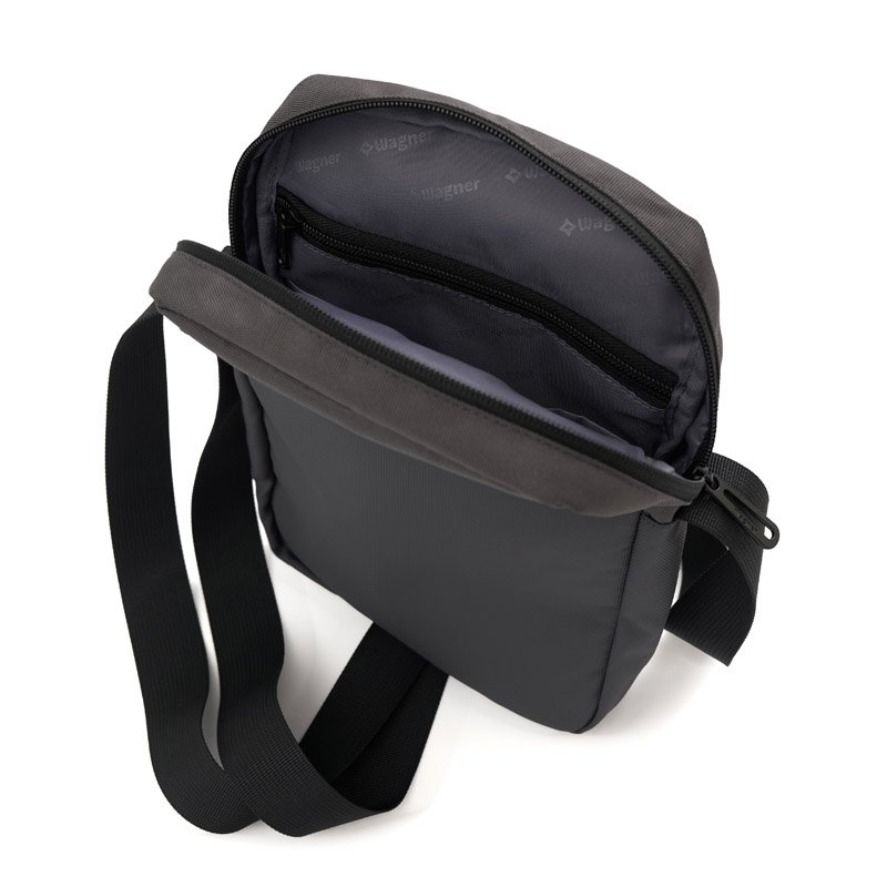 Bandolera morral confeccionada en nylon. Cuenta con un compartimiento principal con cierre, lo que la convierte en un accesorio completo para evitar caídas o pérdidas de tus elementos más importantes. Tiene un bolsillo externo y uno interno con cierre que te permitirá guardar aquellos objetos más pequeños o imprescindibles evitando que se mezclen con los demás. Posee correa regulable. Capacidad: 3L. Wagner.