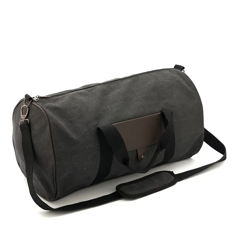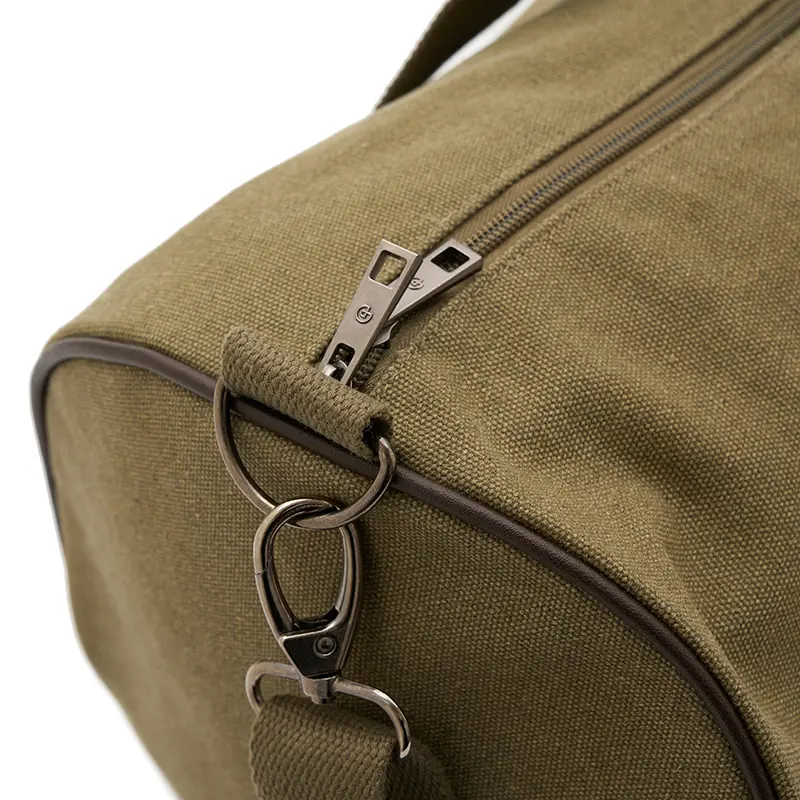 Bolso de viaje confeccionado en resistente twill nylon. Cuenta con bolsillos exteriores de poliuretano, cierre con tiradores, forro interior y accesorios metálicos que varían según el color del bolso es ideal para viajes escapadas de fin de semana o como equipaje de mano gracias a su diseño espacioso y funcional.