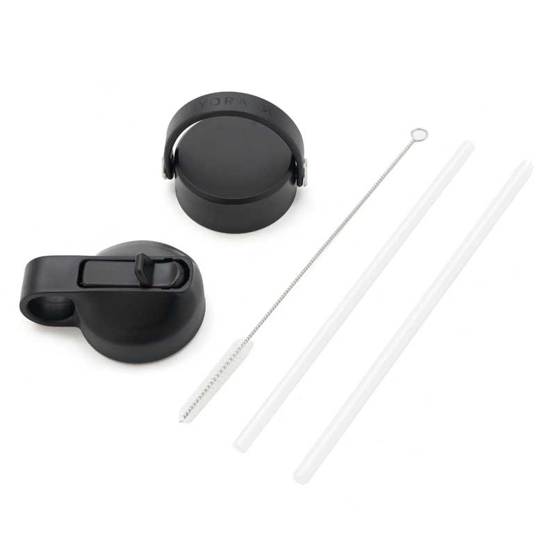 Cuenta con 2 tapas negras a rosca, para que utilices la que te resulte más cómoda: con pico y anillo para facilitar el agarre y con manija para transportarla. Incluye 2 sorbetes y cepillo limpiador.