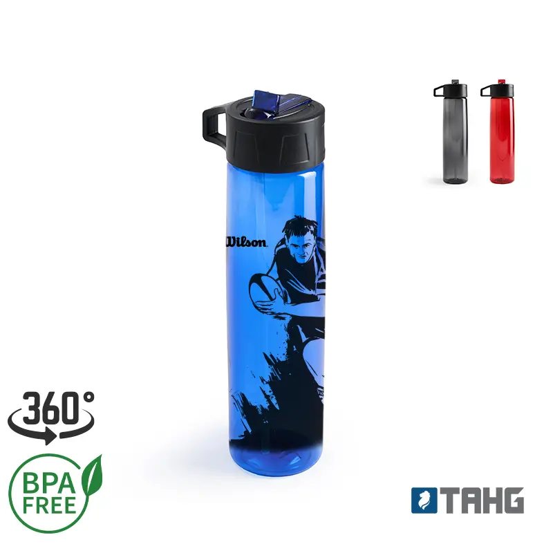 Botella de PC y PP con una capacidad de 750 ml, perfecta para mantenerte hidratado durante el día. Cuenta con tapa a rosca con pico y agarre para transportarla cómodamente a donde quieras.