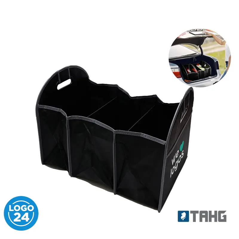 Organizador para auto plegable, con tres compartimientos internos. Medidas: 33 x 32 x 17 cm. Tahg.
