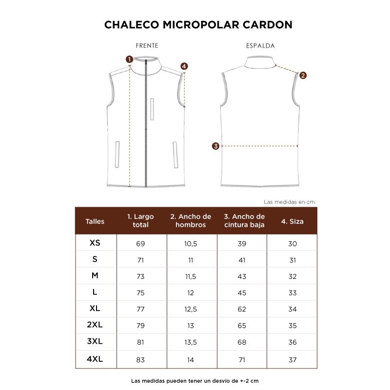 Fabricada en Micropolar de alta calidad, la tela posee un tratamiento antipilling en ambas caras, externa e interna que mantiene por más tiempo el aspecto original de la prenda, evitando la formación de imperfecciones. El chaleco esta confeccionado en un corte clásico.