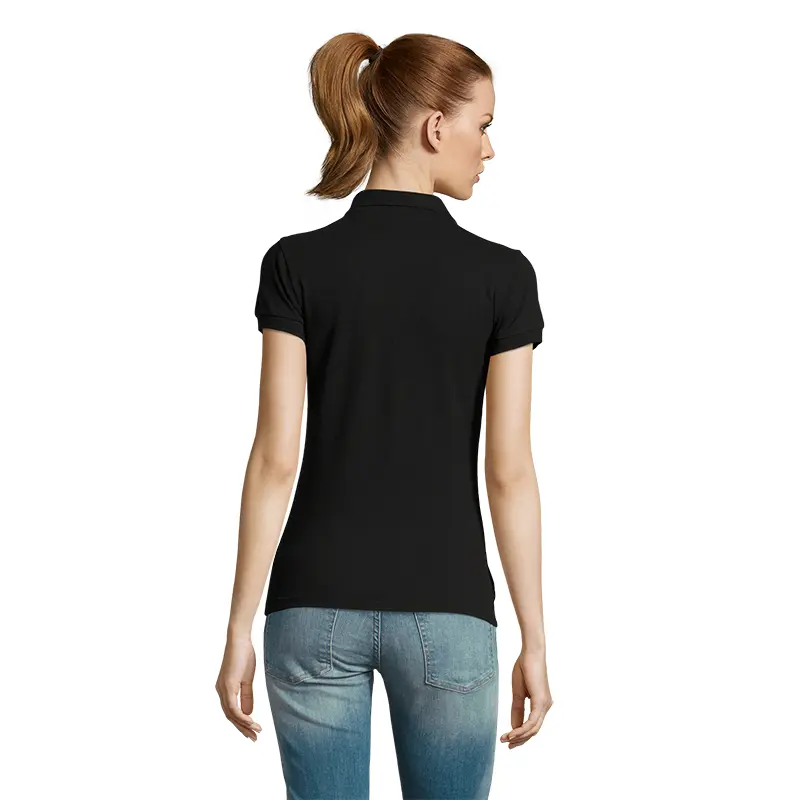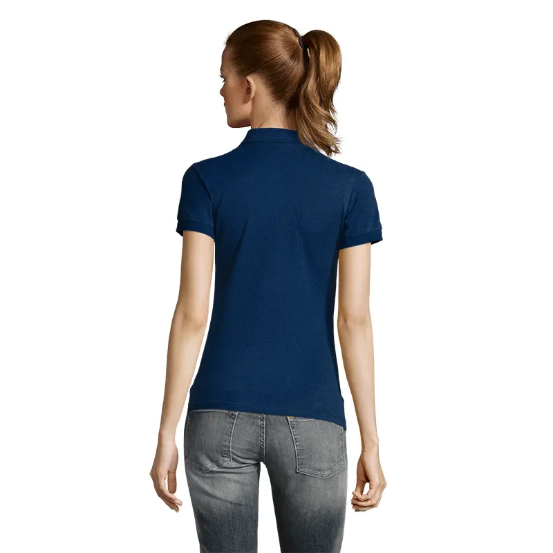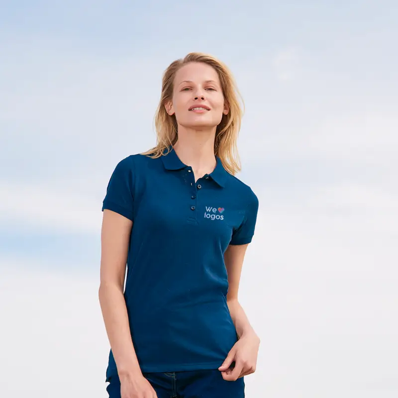 Chomba de pique con cuello de manga corta de 170g, 100% algodón peinado. Corte ajustado, cuello con tapa costura, aberturas laterales, cartera con 4 botones a tono y uno de repuesto