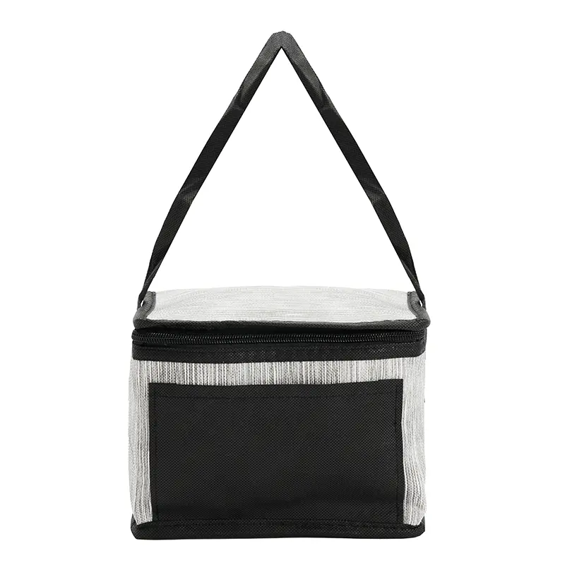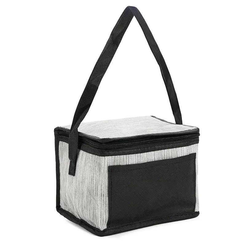 Cooler rectangular compacto con cierre y manijas laterales. Está confeccionado en polipropileno no tejido, con interior forrado en aluminio. Cuenta con compartimiento principal con cierre y asas a los lados para transporte. Es ideal para conservar alimentos y bebidas en salidas.