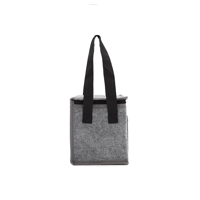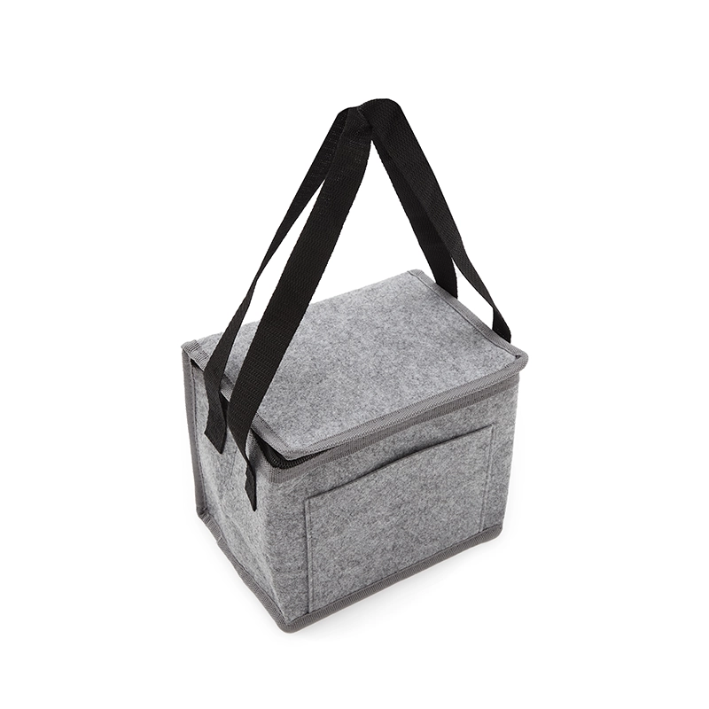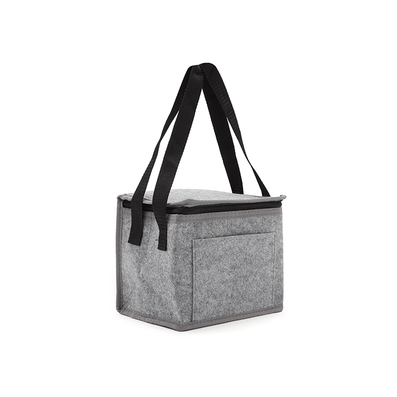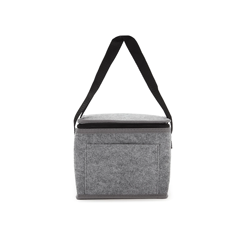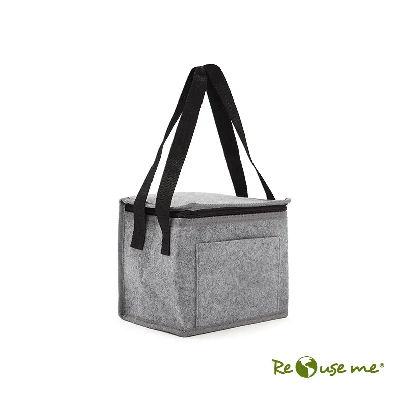 Cooler confeccionado en RPET-felt o felt regular, con espuma de PE de 2 mm laminada con película de aluminio en el interior. Forro interno de PEVA 100% gris. Incluye un bolsillo exterior y correas laterales para facilitar el transporte. Ideal para mantener tus alimentos y bebidas frescos en salidas al aire libre o jornadas laborales. Re Use Me.