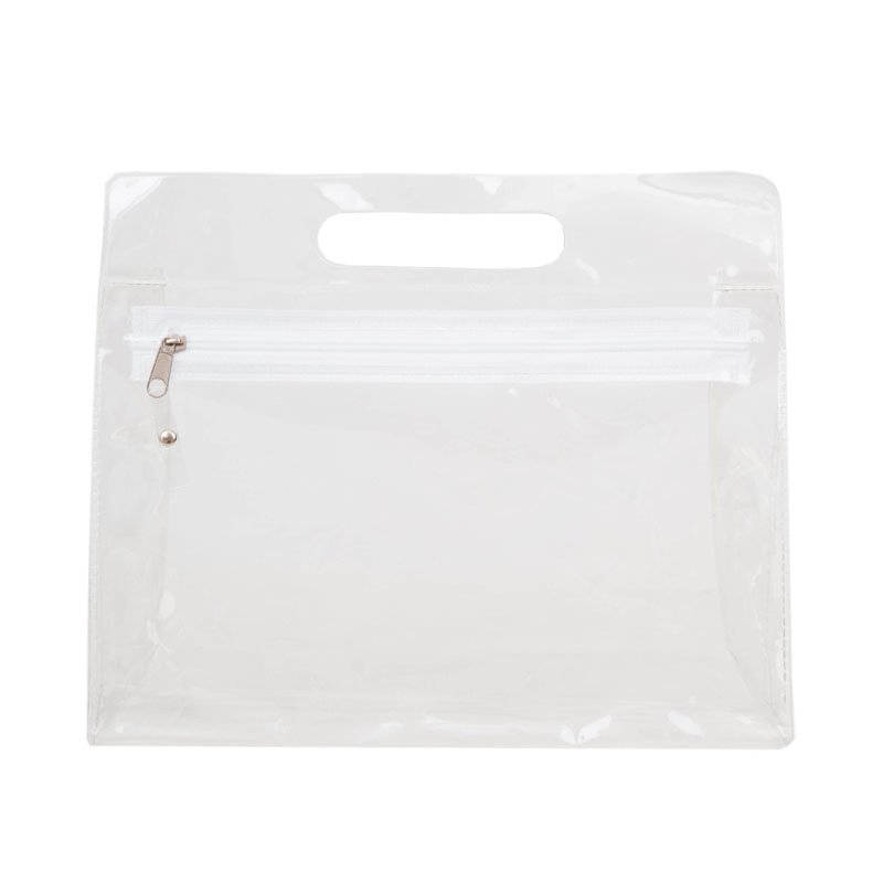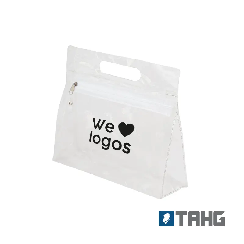 Necessaire de PVC transparente con cierre. Cuenta con fuelle, permitiendo mayor capacidad de guardado. Tahg
