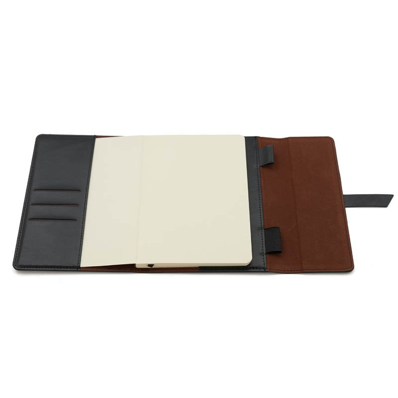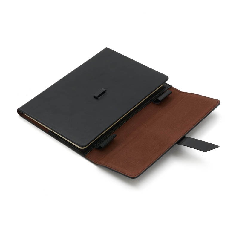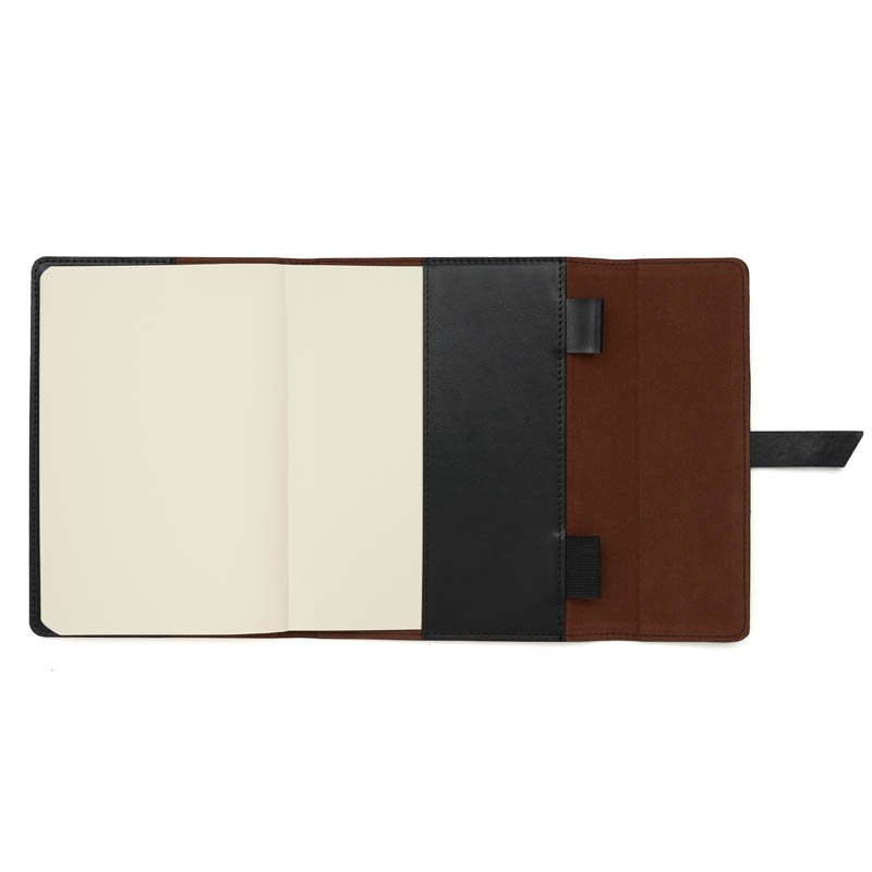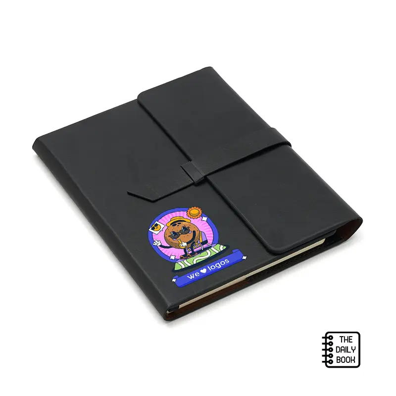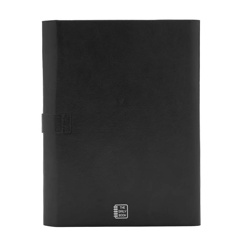 Cuaderno con tapa de simil cuero A5 de 80 hojas de 70gr. Cuenta con cinta señaladora color negro, bolsillos interiores para guardar tarjetas y porta lapicera. Cierre con solapas y cinta de simil cuero. The Daily Book