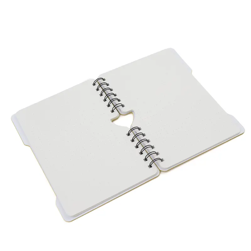 Notebook tipo cuaderno fabricado en material PLA 100% biodegradable y compostable, con hojas internas de diseño punteado. Hecho con materiales sustentables, cuenta con encuadernación práctica y diseño compacto que facilita su transporte. Es ideal para tomar notas, escribir ideas o planificar tareas tanto en el trabajo como en estudio o en movimiento.