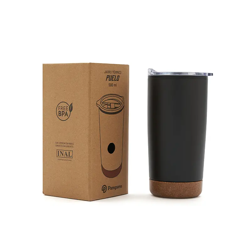 Jarro térmico realizado en acero inoxidable en su exterior, y polipropileno de color negro en su interior. Su tapa es transparente cristal clear. ¡Este jarro térmico es la elección perfecta para mantener tu bebida caliente o fría! Capacidad: 590 ml.