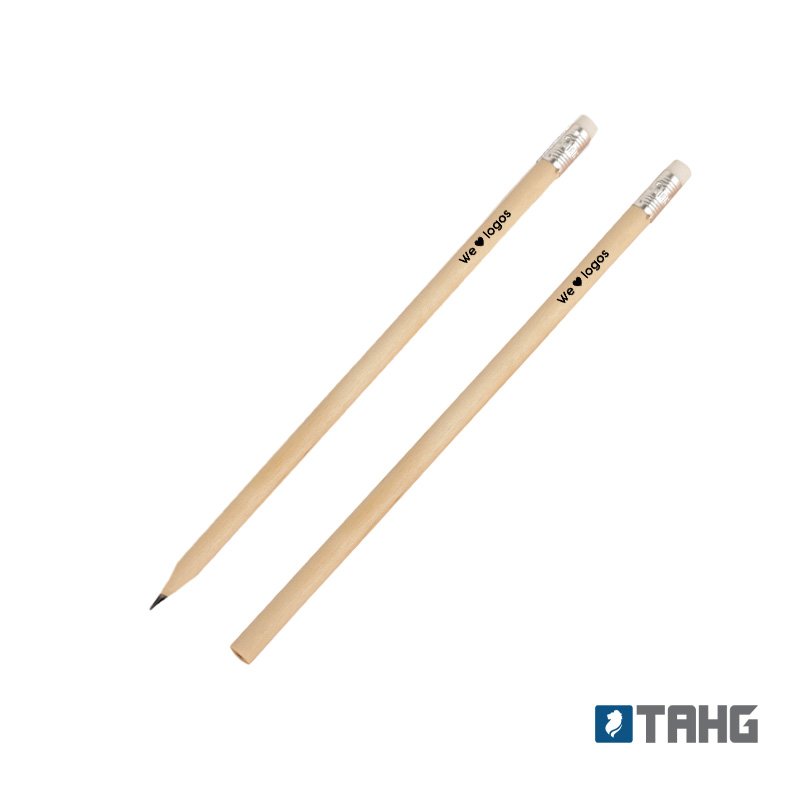 Lápiz negro con goma. Realizado en madera con detalle de aluminio en reborde de goma. Material de la goma: Caucho. Punta sin preafilar. Medidas: 189 mm x 0,8 mm. Mina: 2mm. Tahg
