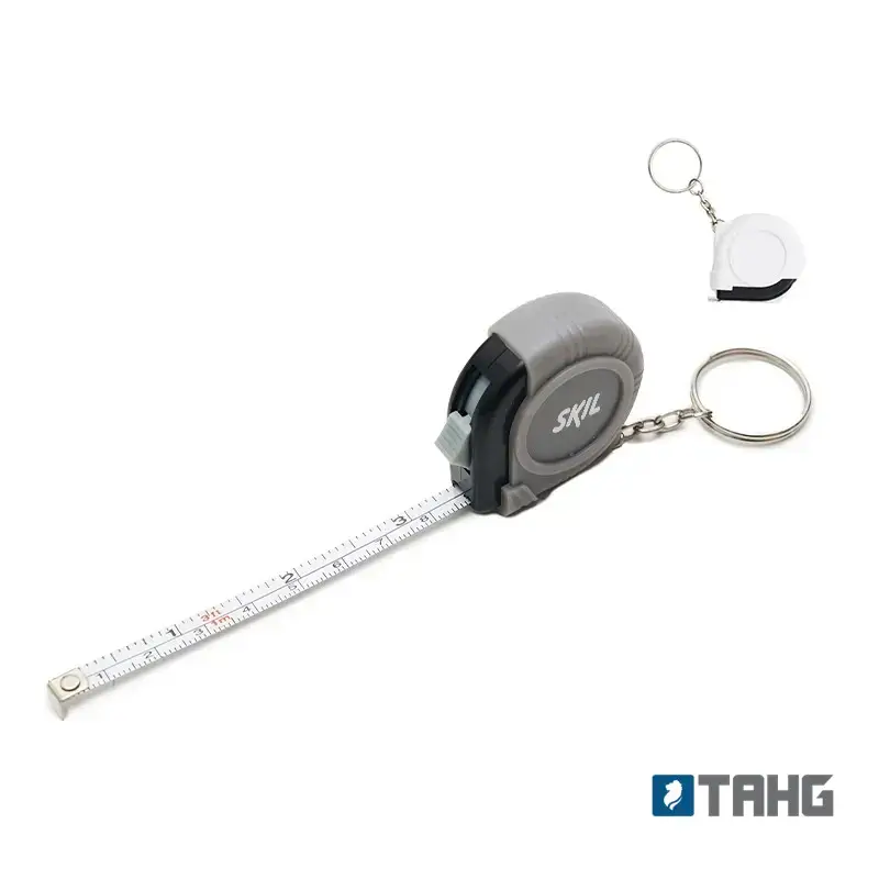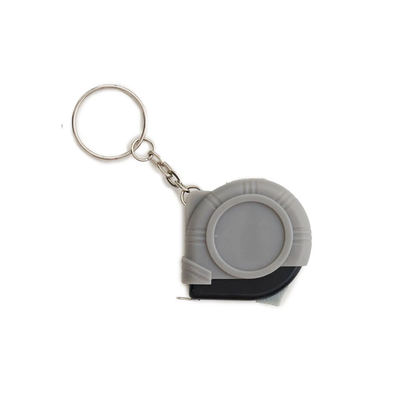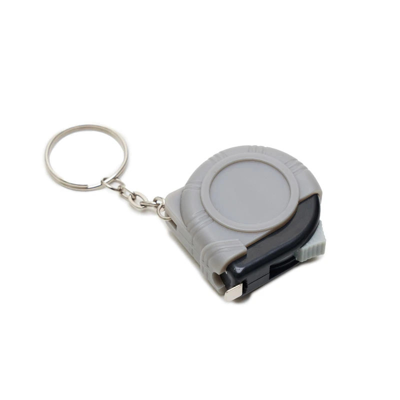 Cinta métrica retráctil con llavero fabricada en ABS y hierro. Cuenta con mecanismo retráctil de 1 metro, anillo metálico para llaves y cuerpo ergonómico. Es ideal para llevar siempre a mano en tareas de medición rápidas, reparaciones en el hogar, actividades de bricolaje o uso profesional diario.