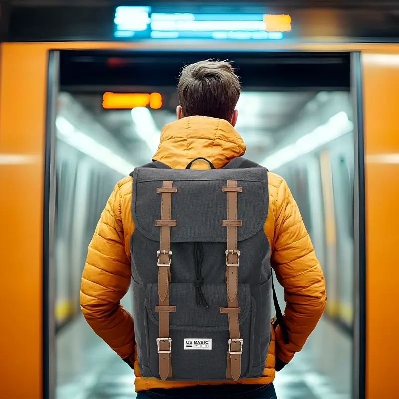 Mochila urbana con correas ajustables Hecha de poliéster y cuero PU. Cuenta con cierre con solapa y hebillas, tiras acolchadas ajustables, bolsillos frontales y capacidad de 18 litros. Es ideal para llevar tus pertenencias al trabajo, universidad o salidas diarias con comodidad.