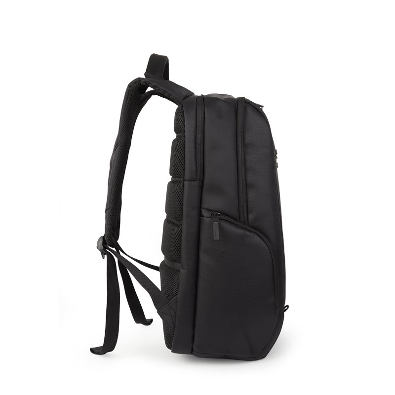 Mochila confeccionada en Nylon Jacquard con cierres en tono y cabezal metálico color negro. Cuenta con un compartimiento primario con tres bolsillos internos para guardar el celular, llaves o billetera y, un compartimiento secundario porta notebook. Posee también dos bolsillos laterales, uno frontal y, uno trasero (todos con cierre). Espalda y correas regulables acolchonadas. Esta mochila es ideal para llevar tu portátil al trabajo, de viaje o donde necesites para estar siempre online. Dimensiones: 47,5 x 31 x 16,5 cm (Alto x Longitud x Ancho). Capacidad: 24 lts. Cardon.