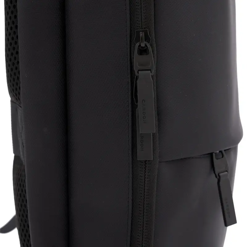 Mochila confeccionada en Polyester con cierres en tono y cabezal metálico color negro.