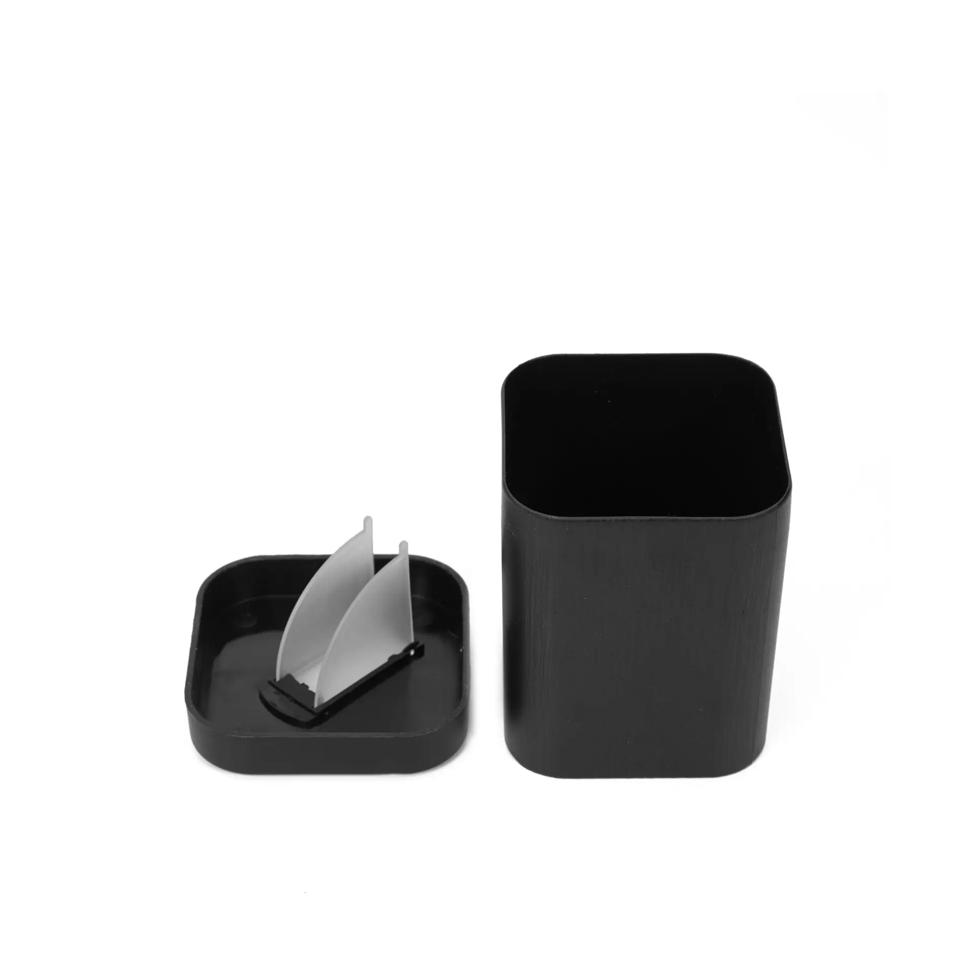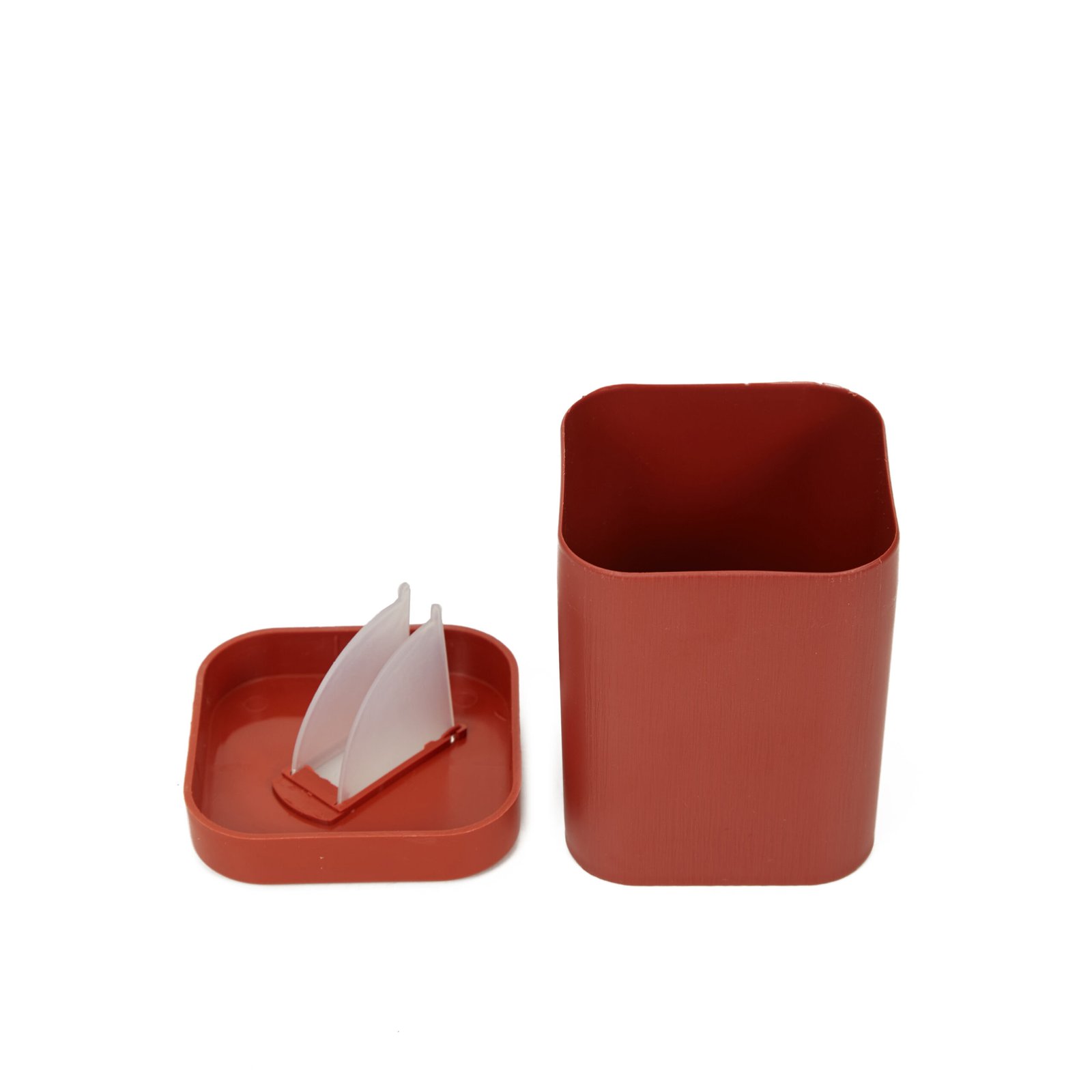Set de yerbera y azucarera con diseño rectangular, hecho en poliestireno con pico vertedor en la tapa. Cuenta con Laterales con terminación texturada y lisa.