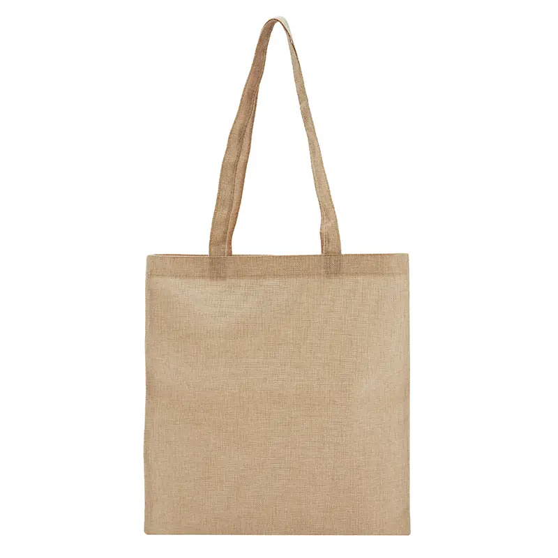 Bolsa tote fabricada en Jute de cañamo Laminado 200g. Capacidad: 0.2L. Ancho 38cm, Altura 42cm. ReUseMe