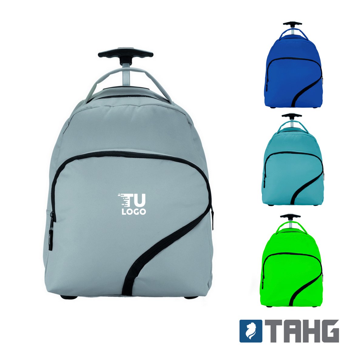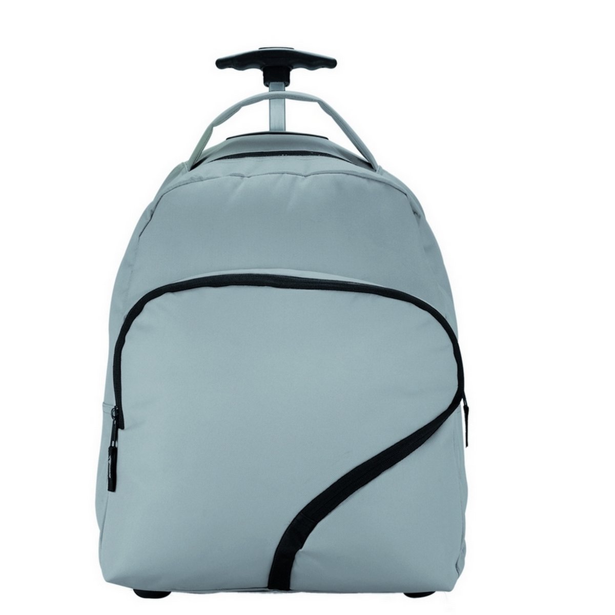 Trolley confeccionado en Nylon 600D con compartimento de carga superior. Bolsillo externo frontal con organizador. Tiras acolchadas y regulables. Bolsillo guarda tira con cierre. Con manija telescópica con traba.